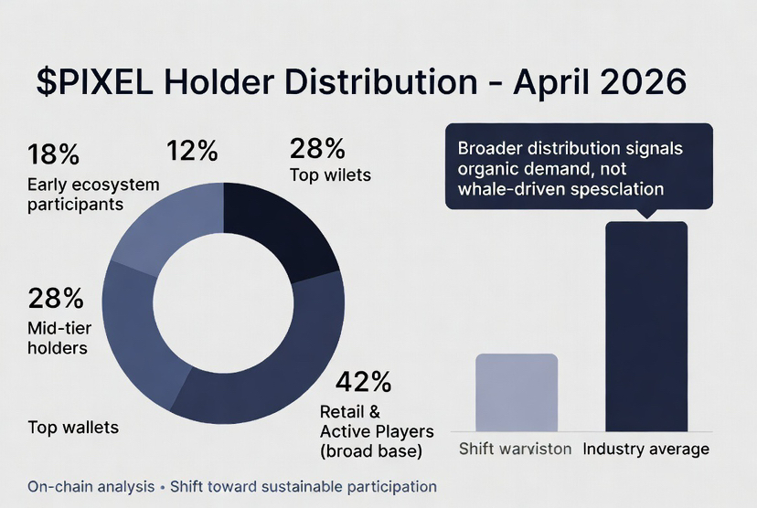 Sygnały rynkowe wskazują na znaczenie obecnych trendów płynności w parze $PIXEL , które pogłębiły się z powodu zwiększonej aktywności w sieci, a nie sztucznych zachęt. Ten rozwój umożliwia handel z minimalnym poślizgiem, co jest niezbędne dla praktycznych zastosowań. Dodatkowo, dystrybucja posiadaczy uległa zmianie, z rosnącą liczbą mniejszych, aktywnych portfeli, co sugeruje zdrowszą strukturę rynku, która nie jest zbytnio uzależniona od dużych posiadaczy, co wskazuje na prawdziwe uczestnictwo, a nie spekulacyjny handel.