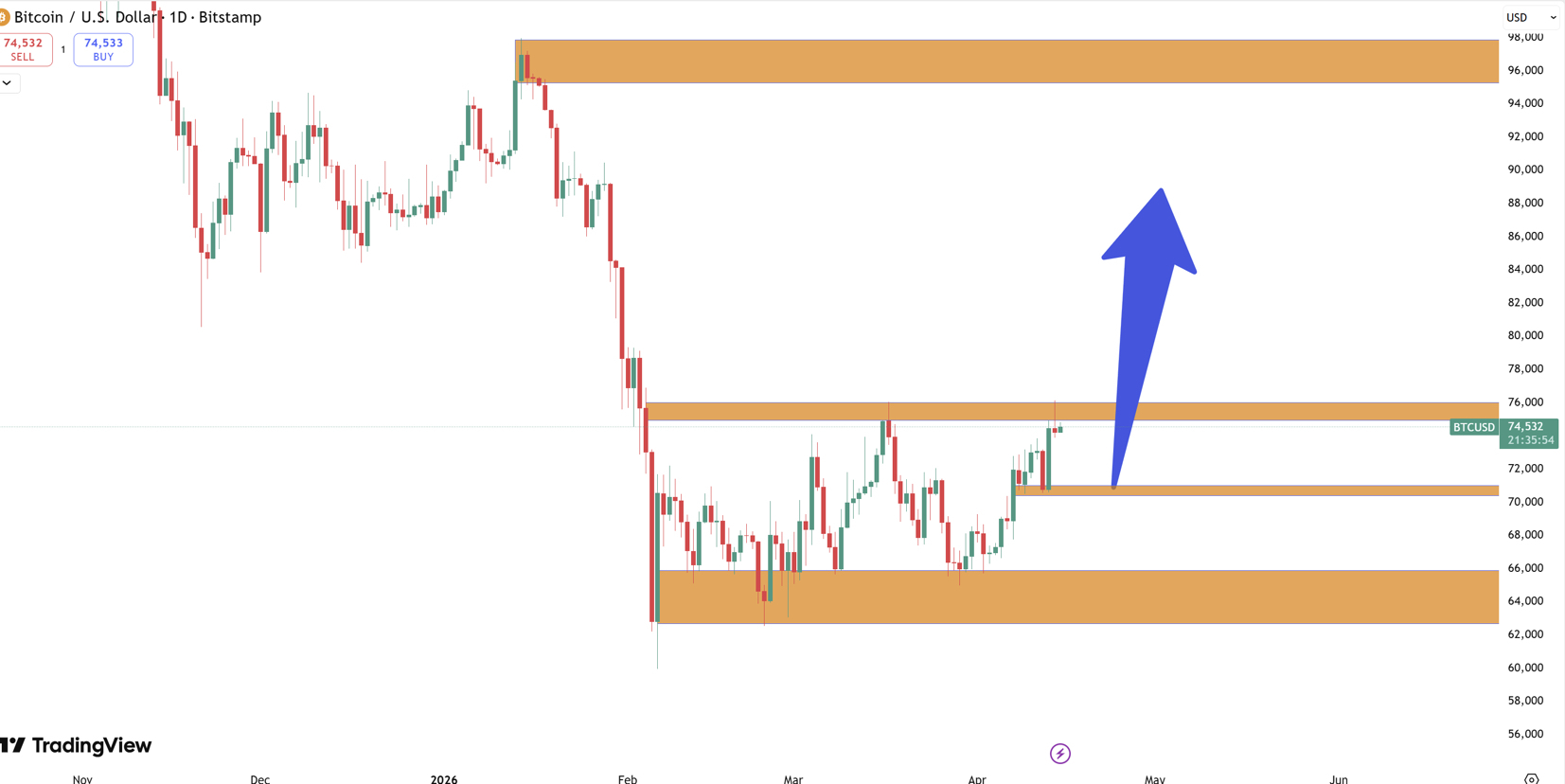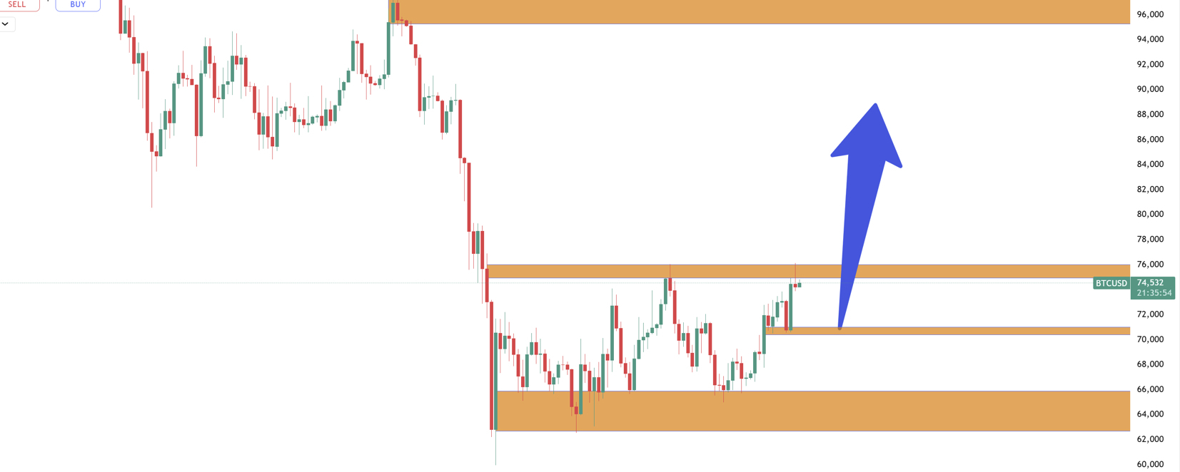 Xu hướng BTC có khả năng tiến sát ngưỡng 76.000