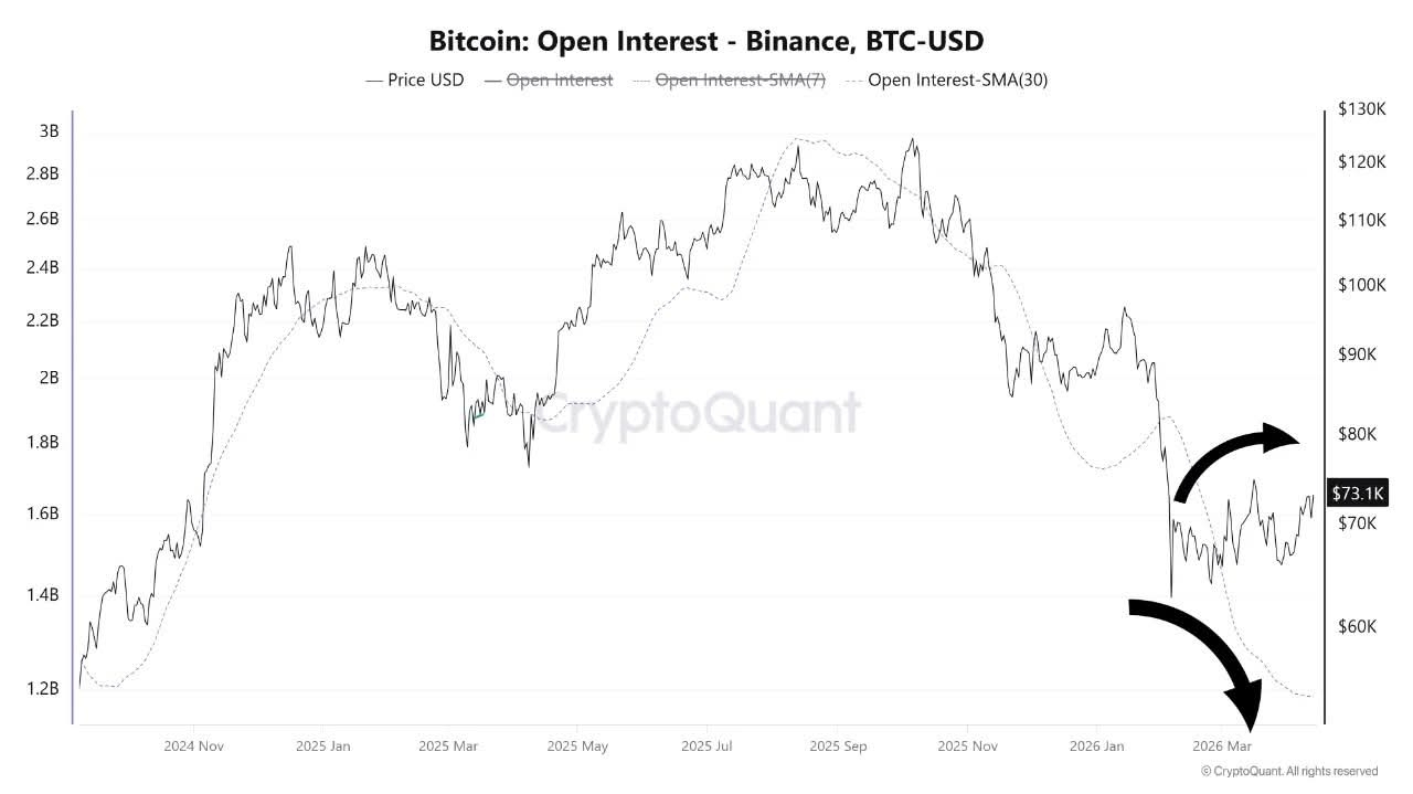 Ostatnie dane rynkowe ujawniają znaczną rozbieżność między ruchem cenowym Bitcoina a otwartą wolumenem na Binance.