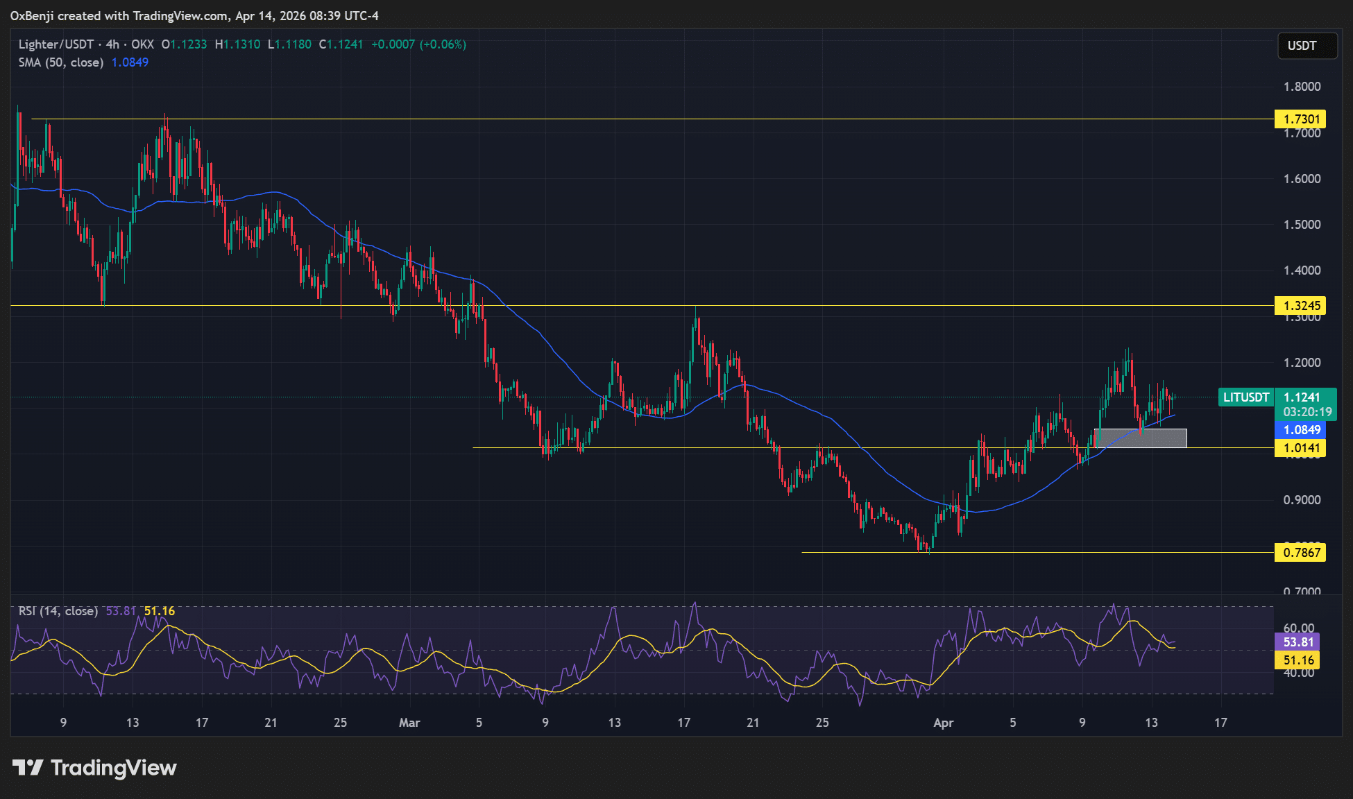 市场的反馈也很直接——Lighter的原生代币 LIT 一度上涨约40%,重新站上1美元。