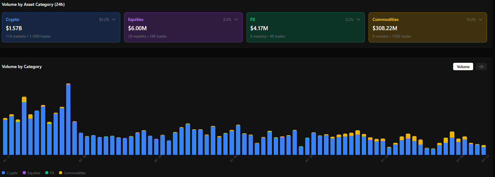 相比之下,Lighter这边就显得有点“冷清”,非加密资产交易占比长期卡在16%左右,增长明显停滞。