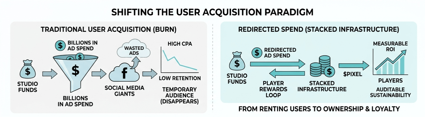 The old way of doing things is essentially lighting money on fire and hoping the smoke signals attract players who actually stick around. Studios spend billions on traditional user acquisition, throwing cash at social media giants just to rent an audience that disappears the moment the subsidy ends. Stacked is leaning into a thesis that redirects that wasted ad spend directly into the pockets of the players themselves. It turns the reward loop into something measurable and the ROI into something auditable, which is a massive shift for any fund looking at sustainable economics instead of a pump and dump scheme. By moving $PIXEL from a single game token to a cross ecosystem rewards currency, they are expanding the demand surface across every new title that plugs into the system. It is a pivot from being a speculative asset for one world to becoming the literal fuel for a growing network of digital economies.