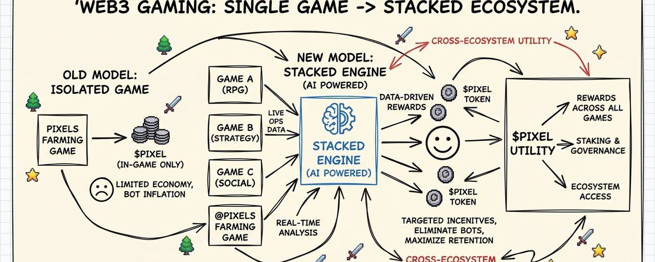 Model play-to-earn w grach kryptograficznych historycznie cierpiał z powodu zepsutych gospodarek spowodowanych niekończącymi się emisjami tokenów i farmowaniem przez boty. @Pixels rozwiązuje ten fundamentalny problem, przechodząc od jednej gry farmingowej do kompleksowej sieci multi-tytułowej znanej jako ekosystem Stacked.