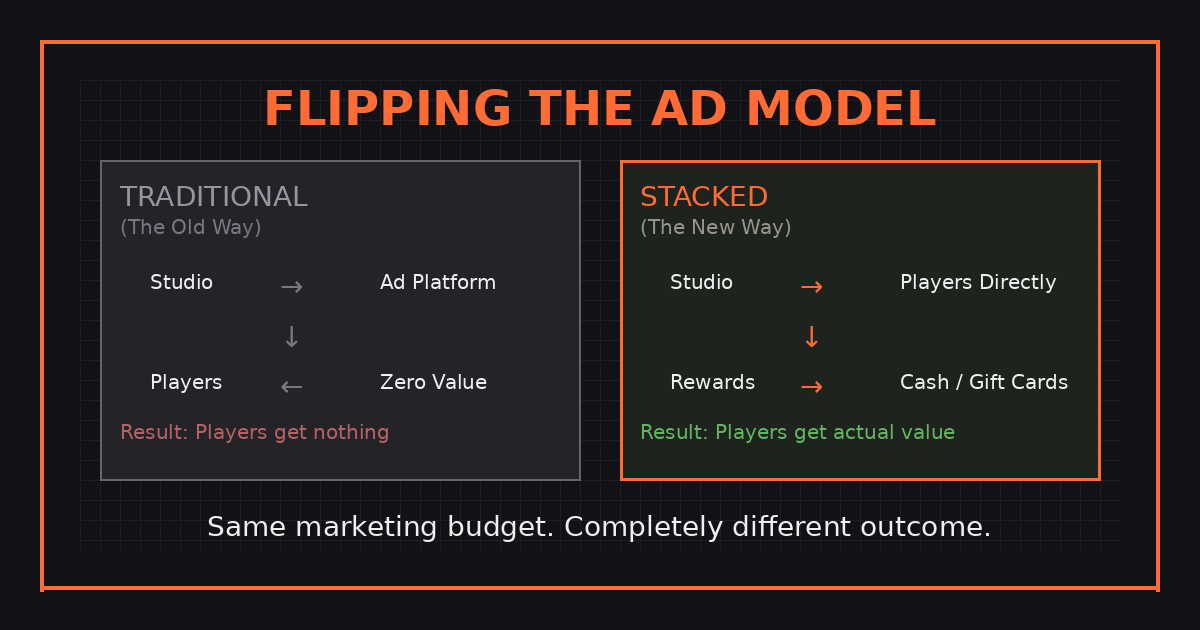 This whole model? It’s basically taking a shot at traditional ad platforms. Yeah, I mean it. Normally, studios burn money on ads, platforms take their cut, and players get… nothing. Zero. Now that same budget goes straight to players. Rewards. Cash. Gift cards. Actual value.