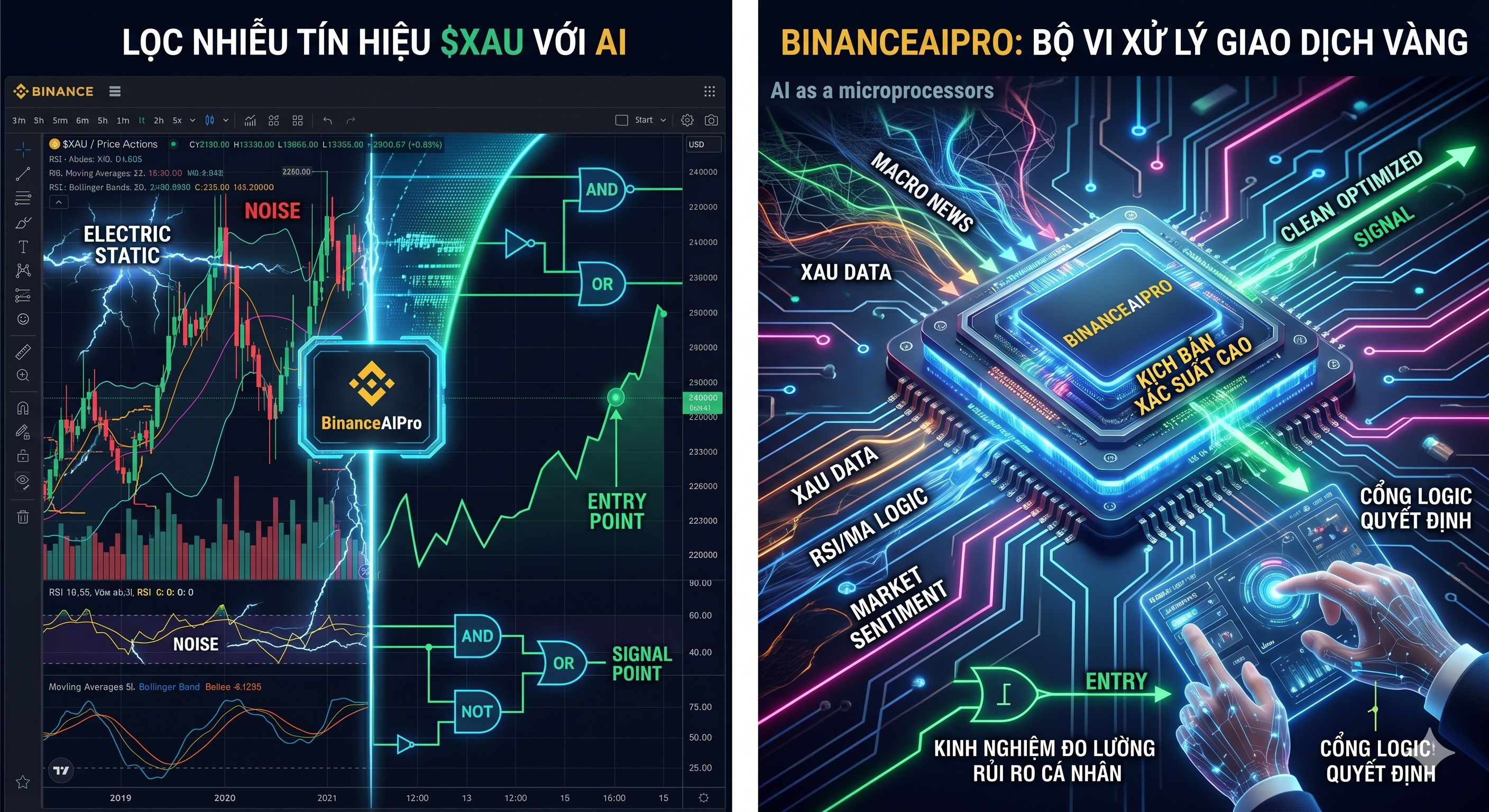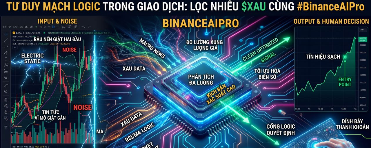 Chào anh em @Binance Vietnam . Nếu anh em nào từng nghiên cứu về kỹ thuật hay hệ thống đo lường, chắc hẳn đều quen thuộc với bài toán tách "tín hiệu" (signal) ra khỏi "nhiễu" (noise). Đặt lăng kính này vào thị trường tài chính, đặc biệt là với một tài sản chạy gắt như $XAU, chúng ta sẽ thấy sự tương đồng đến kinh ngạc. Những pha râu nến giật hai đầu, những tin tức vĩ mô giật gân hàng ngày thực chất chính là "nhiễu điện từ", còn nhiệm vụ của một trader là thiết lập các "cổng logic" chặt chẽ để tìm ra dòng chảy tín hiệu thật sự của dòng tiền.Khi giao dịch với đòn bẩy cao, việc phân tích sai xu hướng chẳng khác nào một pha đoản mạch – hậu quả là "cháy" tài khoản rất nhanh. Trước đây, để tìm điểm vào lệnh, chúng ta thường phải tự thiết lập các bộ quy tắc thủ công, đối chiếu liên tục xem RSI có phân kỳ chưa, đường MA có giao cắt không... Quá trình này rườm rà hệt như việc ngồi giải các bài toán tối ưu hóa mạch bằng bảng Karnaugh vậy. Rất tốn thời gian và dễ có sai số khi thị trường biến động quá nhanh.Nhưng cuộc chơi giờ đã khác với sự xuất hiện của #BinanceAIPro . Trong hệ thống giao dịch của mình, AI hiện tại đóng vai trò như một bộ vi xử lý và lọc nhiễu tín hiệu số đa luồng cực kỳ mạnh mẽ. Nó có khả năng đánh giá hàng triệu điểm dữ liệu lịch sử và đo lường xung lượng giá với độ trễ gần như bằng không. Thay vì bị ngợp trước vô vàn chỉ báo rối rắm, AI giúp tối ưu hóa biến số và đưa ra những kịch bản có xác suất đúng cao nhất.