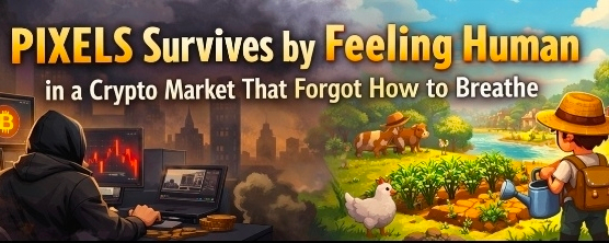 Ludzie są zmęczeni. Rynek jest zmęczony. Możesz to poczuć w sposobie, w jaki teraz porusza się uwaga. Nic już nie ląduje czysto. Wszystko jest filtrowane przez podejrzliwość, recyklingowany entuzjazm i rodzaj niskiej wytrzymałości, która pochodzi z obserwowania tych samych obietnic malowanych na nowo co kilka miesięcy. Więc gdy projekt taki jak PIXELS pojawia się z światem, do którego ludzie mogą faktycznie wejść, nie potrzebując najpierw glosariusza i kazania, zauważam. Nie dlatego, że nagle jestem sentymentalny w sprawie gier rolniczych. Nie jestem. Zauważam, ponieważ łatwość stała się rzadka.