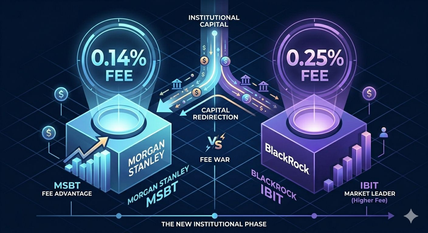 Morgan Stanley introdujo MSBT, un ETF de Bitcoin con una comisión de 0.14%, posicionándose por debajo del líder del mercado, BlackRock, cuyo fondo IBIT cobra 0.25%.