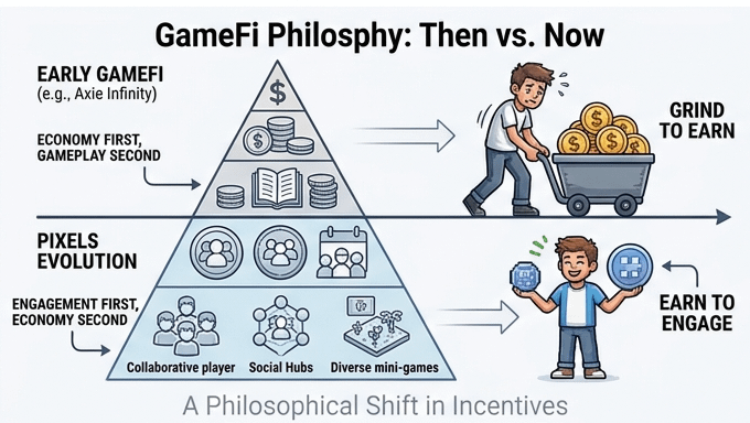 When I compare Pixels to earlier projects like Axie Infinity, the difference feels philosophical. Axie was heavily financialized from the start. Pixels feels like it’s trying to earn engagement first and monetize later. That doesn’t guarantee success, but it does change the trajectory.