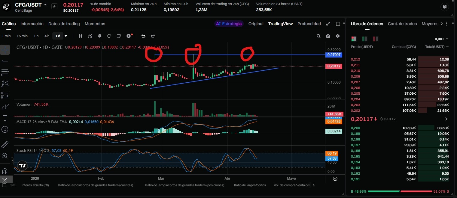 En CFG los gráficos muestran picos que frenan el precio, aunque también se aprecia una subida constante. Es posible que entremos en un periodo de lateralización.