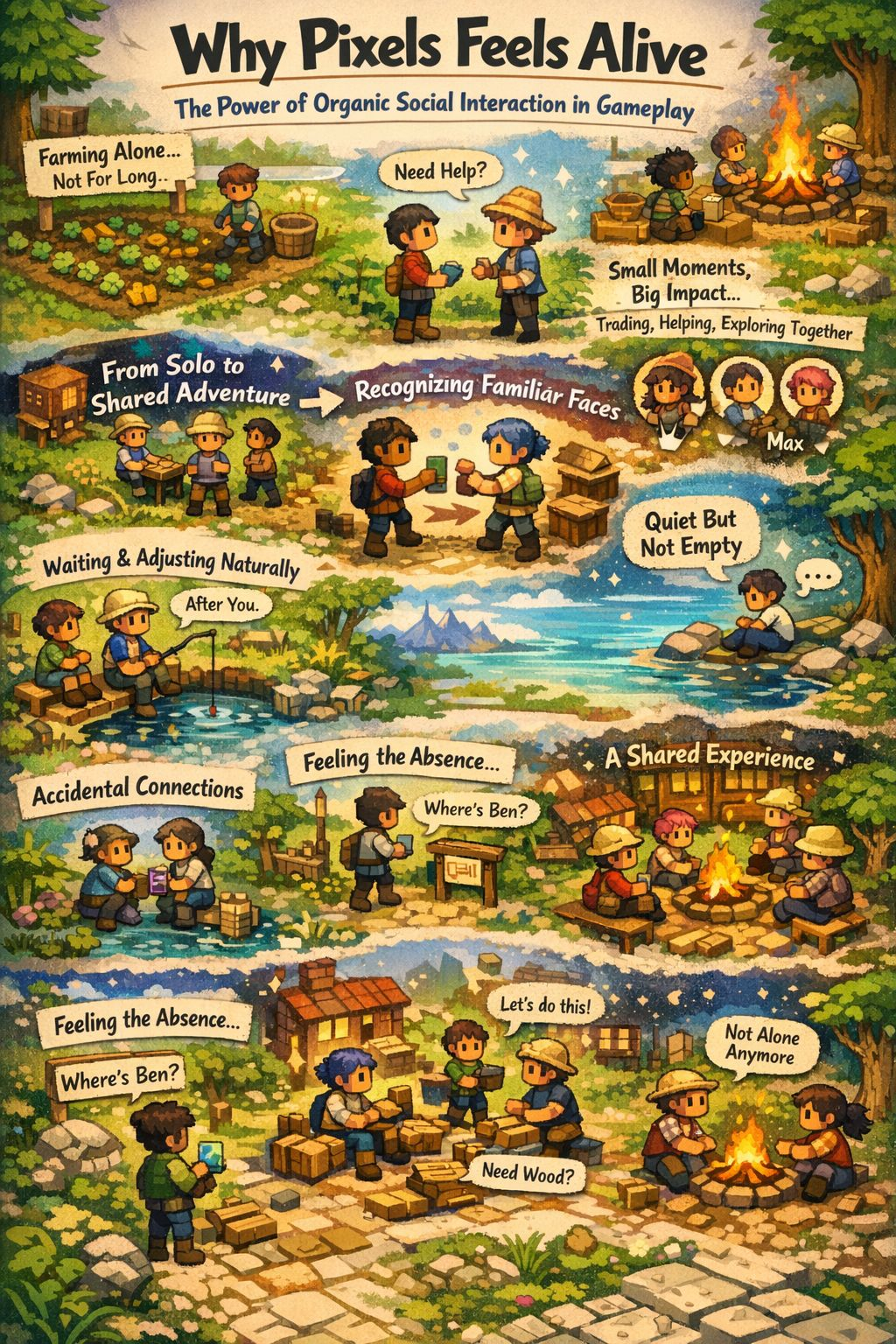That’s kind of how Pixels works on you. It doesn’t force you into social play. It just makes being alone feel slightly incomplete.