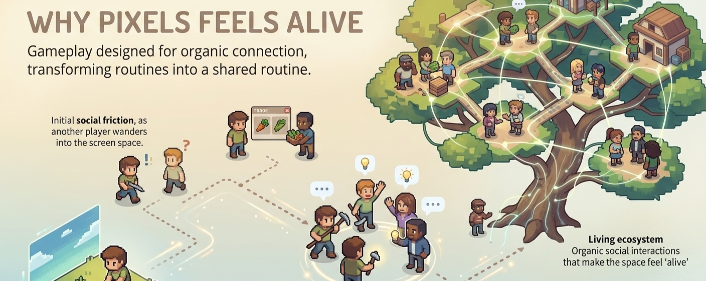 I didn’t really think much of it at first. Pixels just looked like another one of those games where you log in, do your own thing, maybe interact a little if you feel like it, then log out and come back later. Nothing special on the surface.