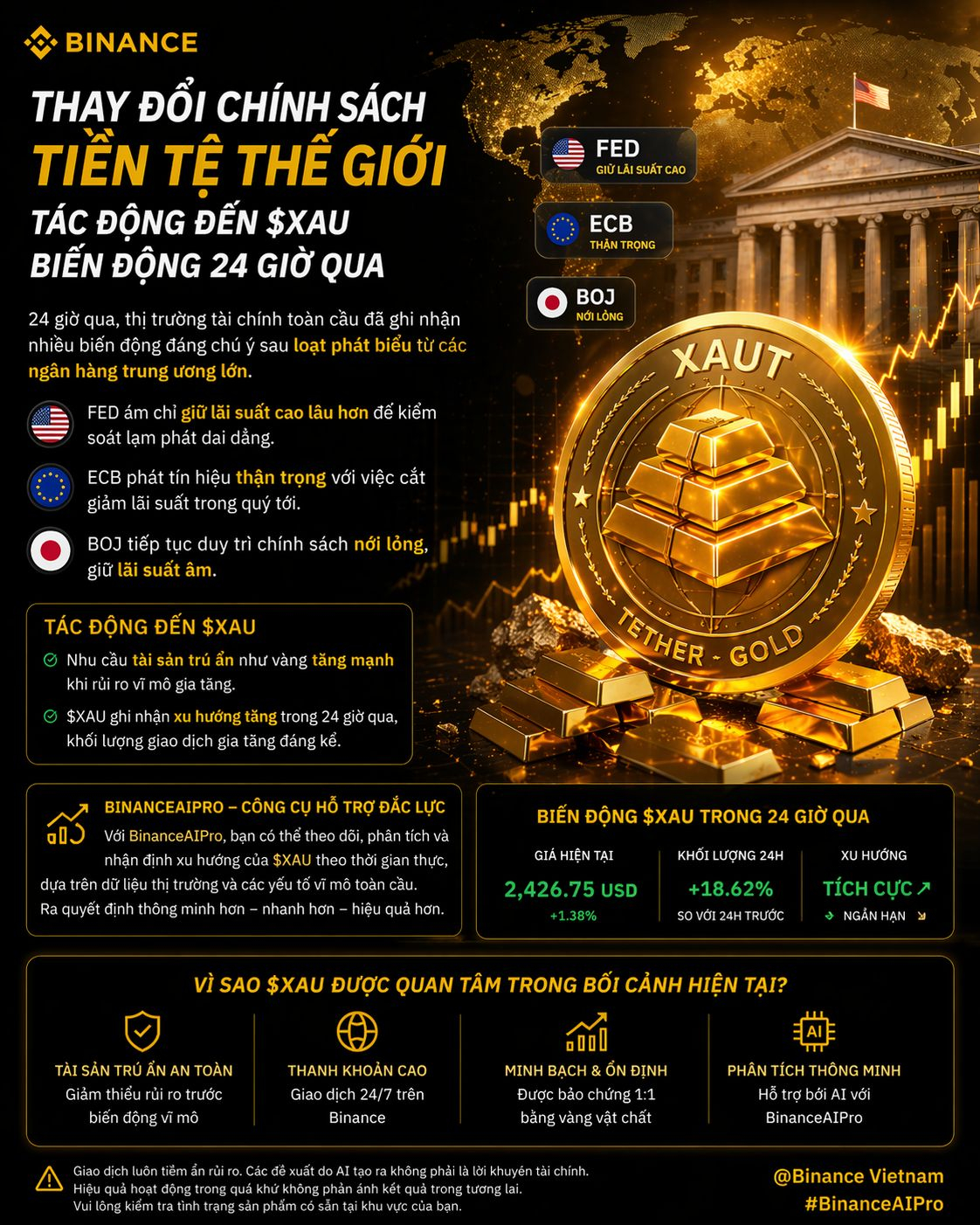 Có thể trong thời gian tới, $XAUT sẽ tiếp tục chịu ảnh hưởng mạnh từ các chính sách tiền tệ toàn cầu. Vì vậy, việc theo dõi sát thông tin và kết hợp với các công cụ như BinanceAIPro sẽ giúp anh em chủ động hơn trong chiến lược của mình.