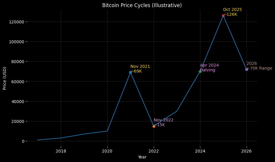 Bitcoin held the $60K zone (January 2026).It didn’t revisit deep bear market levels.Volatility has significantly decreased since March 2026