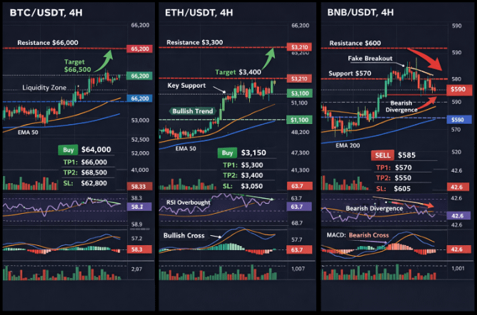 Saat ritel sibuk panik dan FOMO, Smart Money justru lagi pasang jaring diam-diam di area likuiditas. Jangan sampai asetmu jadi "makanan" whale hari ini. Ini peta pergerakan BTC, ETH, dan BNB yang wajib kamu tahu sebelum terlambat. 🚨
