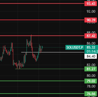 Jeśli dziś spadnie poniżej 84, to poziom 1-2 godziny zacznie się korektą, najpierw do 82-79-76 w tych rejonach czekaj na pozycje długie!#solana