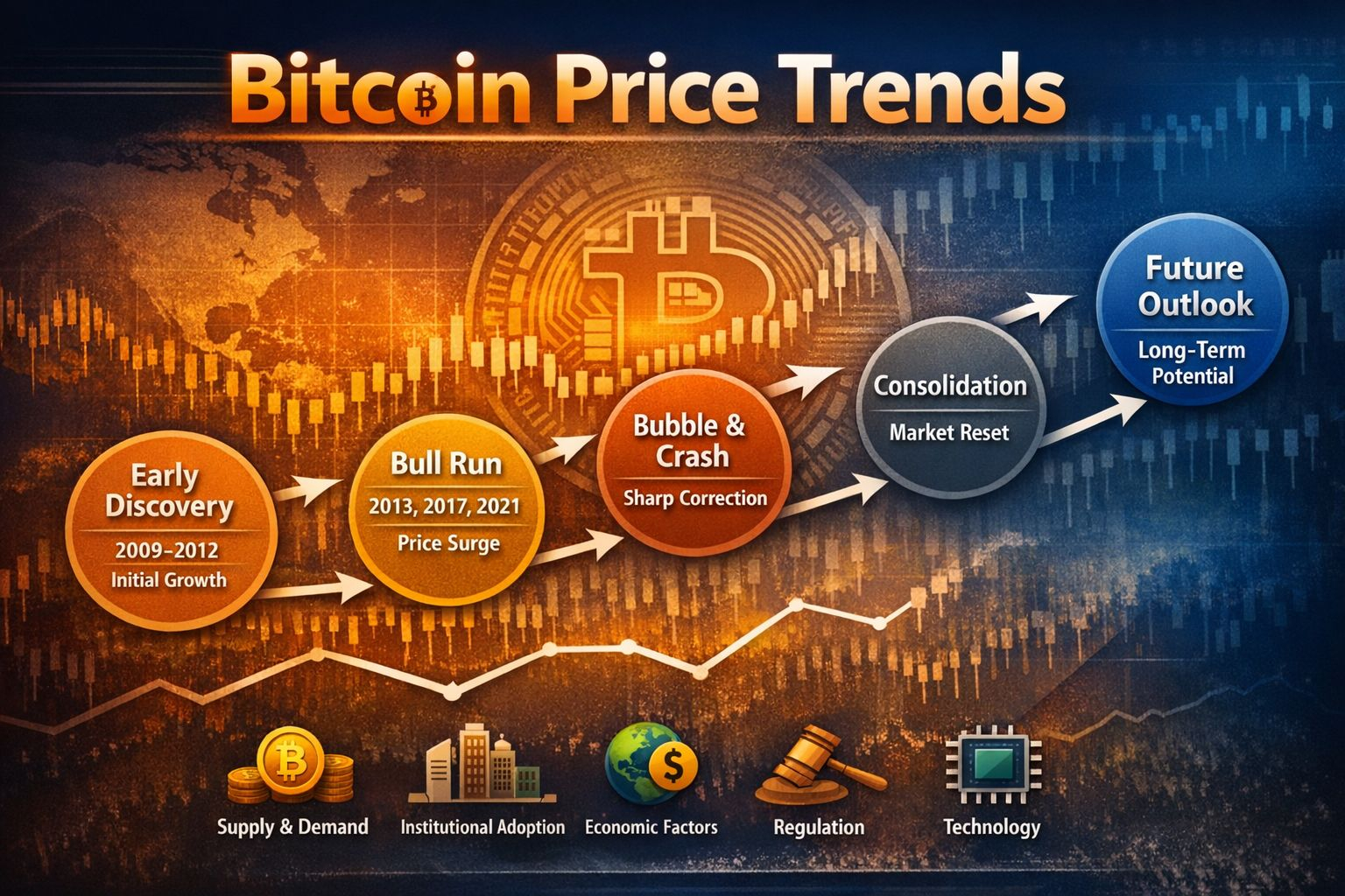 Technological progress and regulatory developments also contribute to price movement, as they influence both confidence and accessibility, which in turn affect demand.