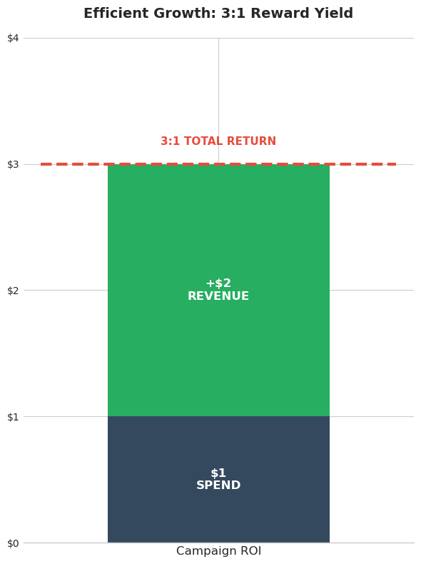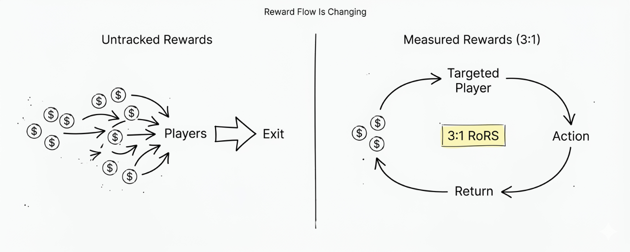 early campaigns showed roughly a 3:1 return on reward spend so value doesn’t just go out some of it comes back and keeps moving which is closer to how traditional systems measure ROI spend $1 expect more than $1 back not just growth… but efficient growth
