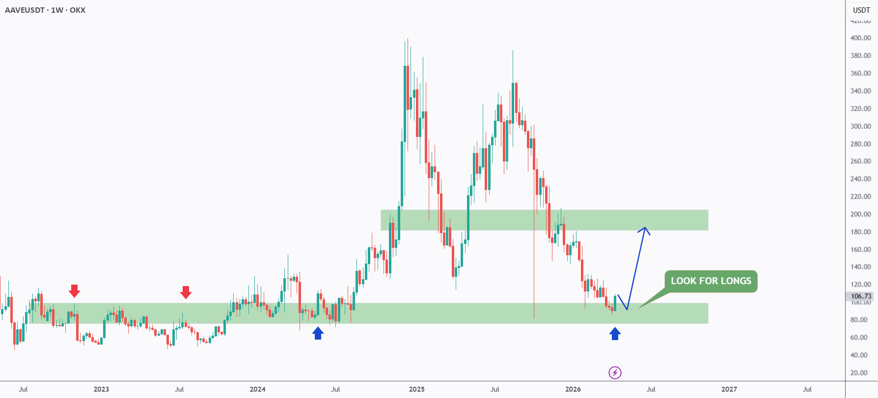 AAVE obecnie znajduje się w bardzo silnej strefie zbiegu.