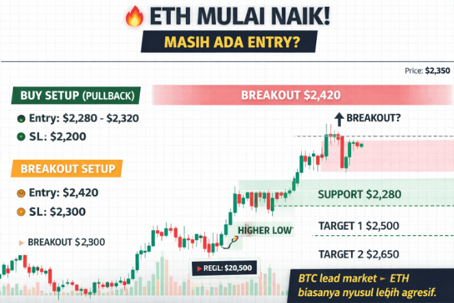 Berdasarkan data historis, ETH seringkali outperform BTC ketika dominasi Bitcoin mulai melandai di tengah market yang bullish. Ini adalah fase di mana likuiditas mulai mengalir ke altcoins besar (Big Caps). Jika struktur higher low ini bertahan, target $2,700 bukan hal yang mustahil dalam waktu dekat.