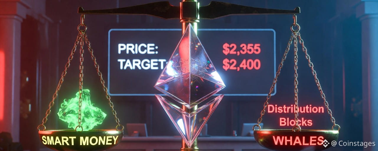 Ryzyko odrzucenia: Jeśli ETH nie zdoła przełamać ściany 2 400 USD, uzasadni to wyjście wielorybów. W tym scenariuszu pierwsze wsparcie znajduje się na poziomie 0,618 Fibonacci ($2,299), z głębszym ryzykiem przesunięcia w kierunku 2 160 USD.