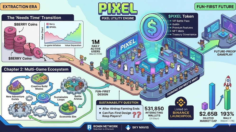 *The “needs time” part shows up here too*: Berry, the original in-game token, didn’t keep up with PIXEL’s surge. Gameplay is still simple compared to AAA, and sustainability depends on whether Chapter 2 can keep players after airdrop farming ends.