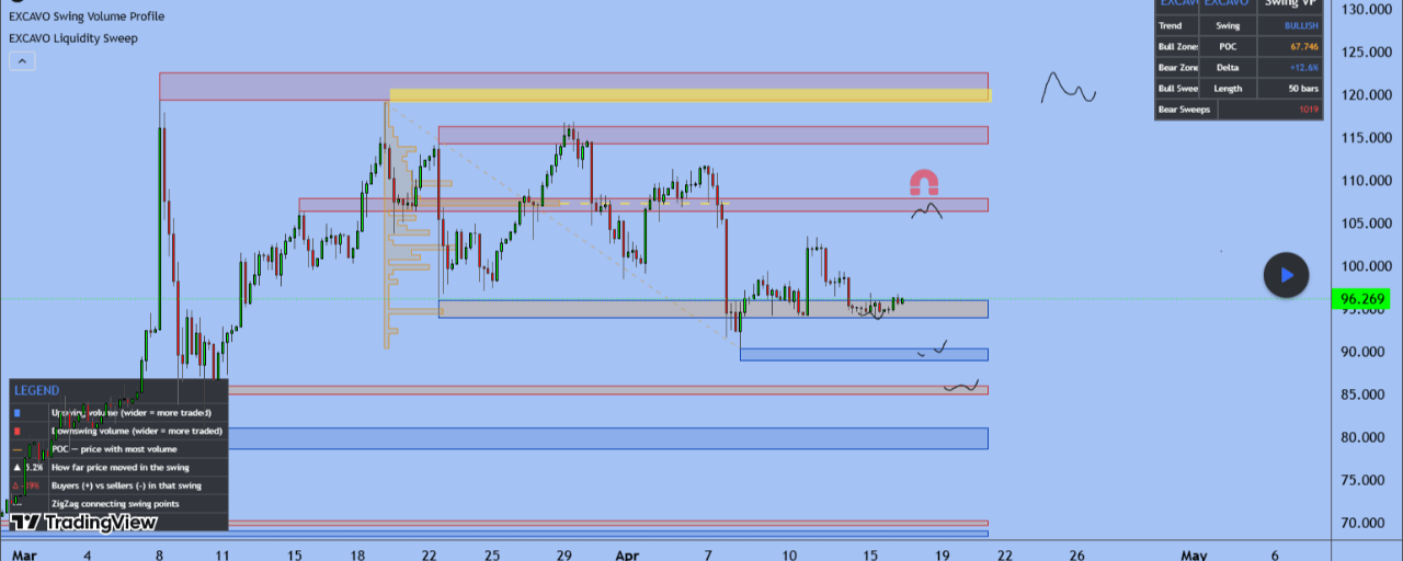This is where the majority gets it completely wrong. Everyone's looking for directional movement — either a moon shot to $150 or a crash to $60. But I see extended consolidation in the $85-120 range followed by an upward breakout.