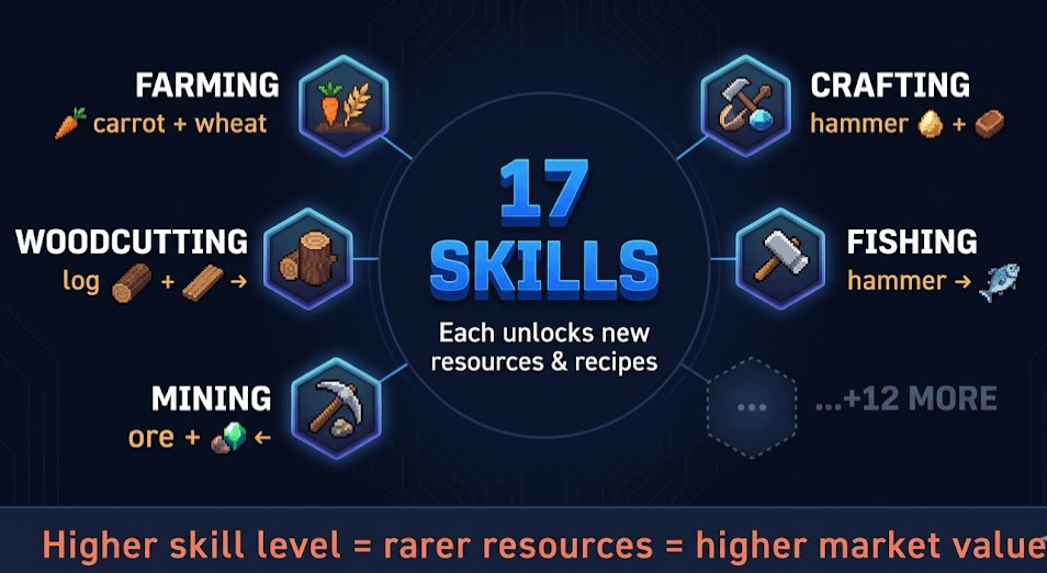 There are several resource types: raw materials (timber, ore, crops), processed items (crafted goods), and NFT objects (land, buildings, tools). Each plays a different role. Raw materials are input. NFTs are infrastructure. PIXEL is what ties everything together.