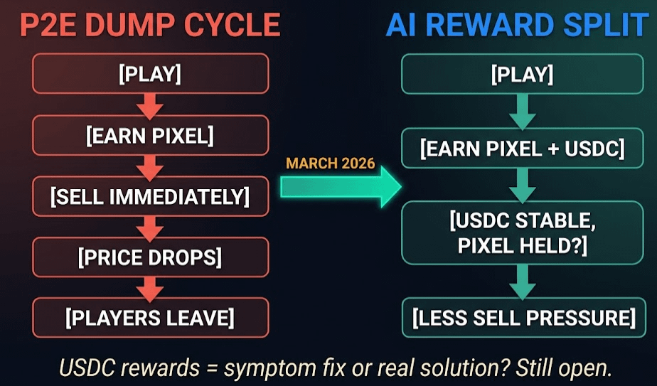 And here's where I got stuck: I couldn't understand for a long time why a player would hold PIXEL instead of selling immediately. Until I looked at the spending side.