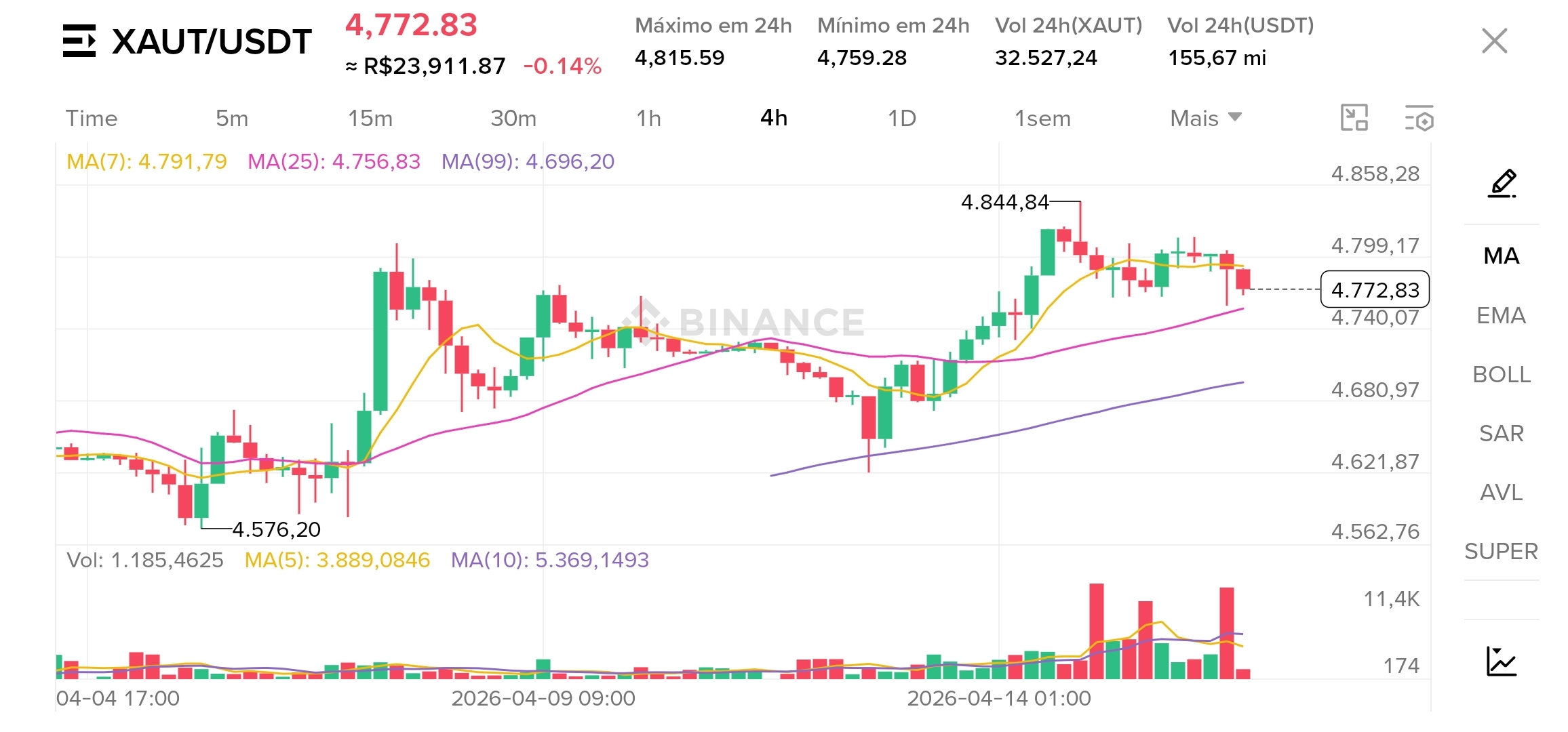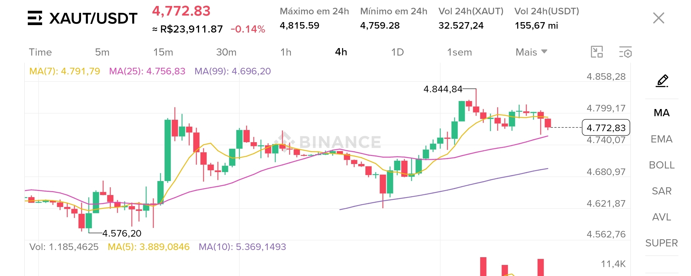 Pontos de Entrada: Região de suporte entre 4.756 e 4.760.
