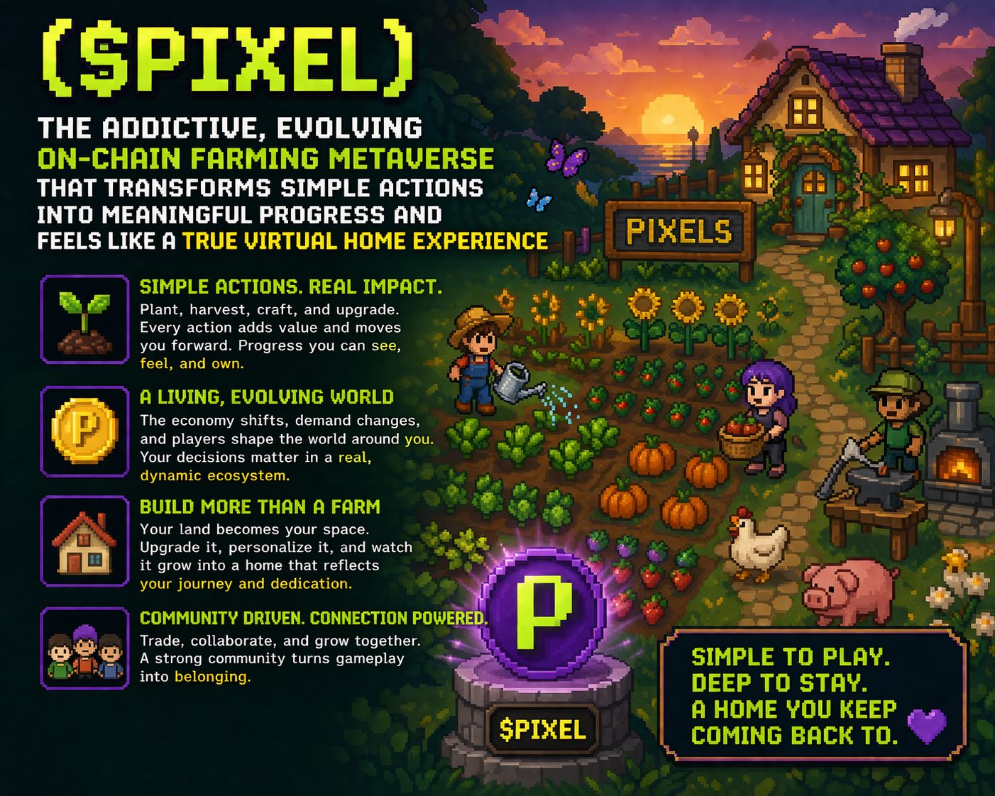 W swojej istocie, Pixels odnosi sukces, ponieważ ceni sobie prostotę, jednocześnie tworząc głębię. Nie przytłacza cię niepotrzebnymi systemami, ale nigdy nie czuje się pusto ani bez celu. Każda sesja przypomina kontynuację, a nie restart, a ta ciągłość tworzy silną pętlę zaangażowania. W przestrzeni, gdzie większość gier goni cykle hype, Pixels cicho koncentruje się na spójności, co sprawia, że mniej przypomina produkt, a bardziej trwały wirtualny dom, do którego wracasz bez zastanowienia.