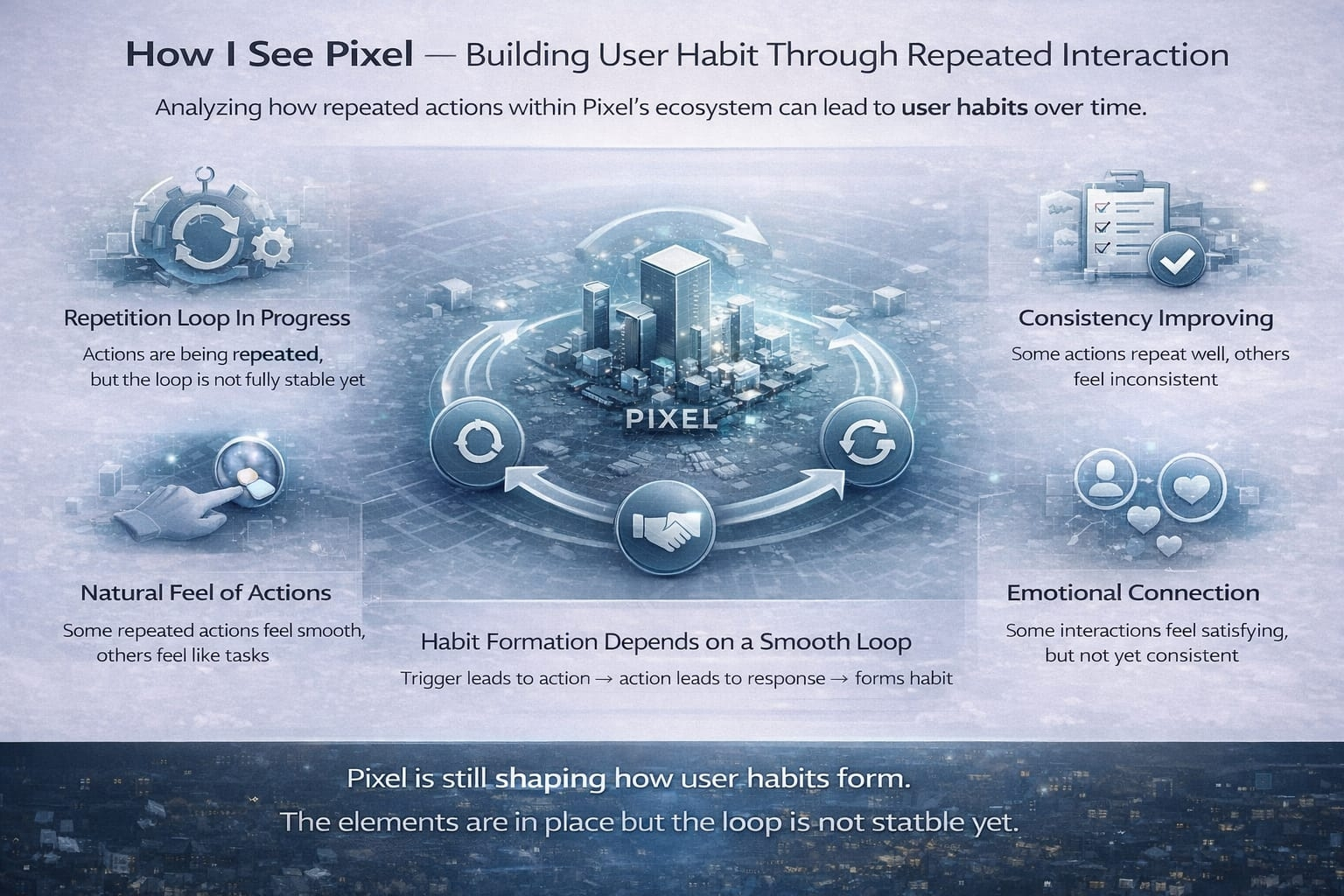 I see Pixel as a system that is trying to build user habit through repeated interaction patterns, but it is still in the process of strengthening that loop.