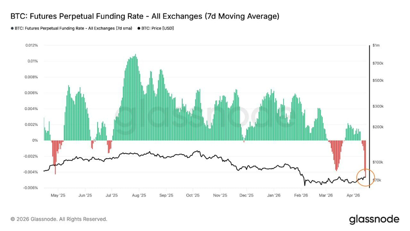Finansowanie nie tylko spada na minus… kompresuje się agresywnie, podczas gdy cena jest już słaba.