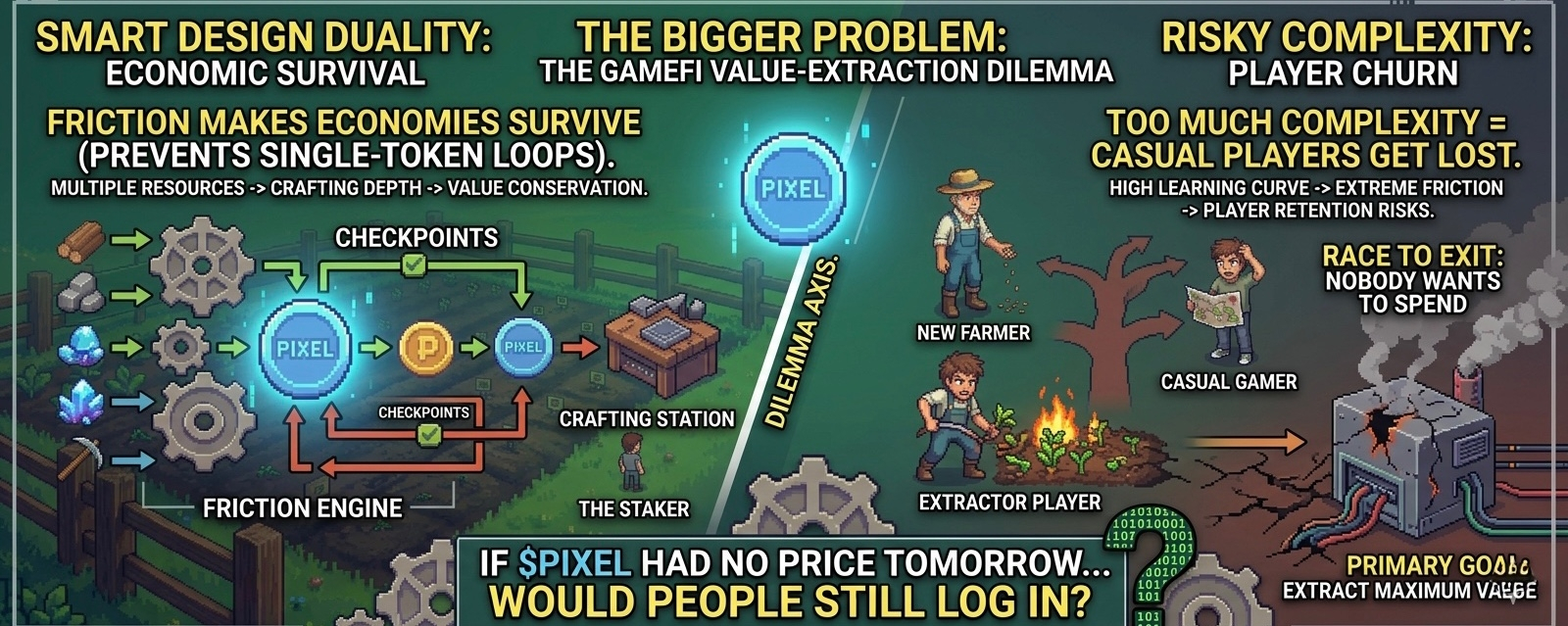 PIXELS seems aware of this. They’re trying to reward people who stay in the system, not just farm and dump.