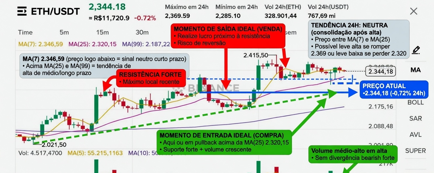 - A MA(7) amarela em 2.346,59 está logo acima do preço atual — típico de uma pequena correção/consolidação após o impulso de alta.