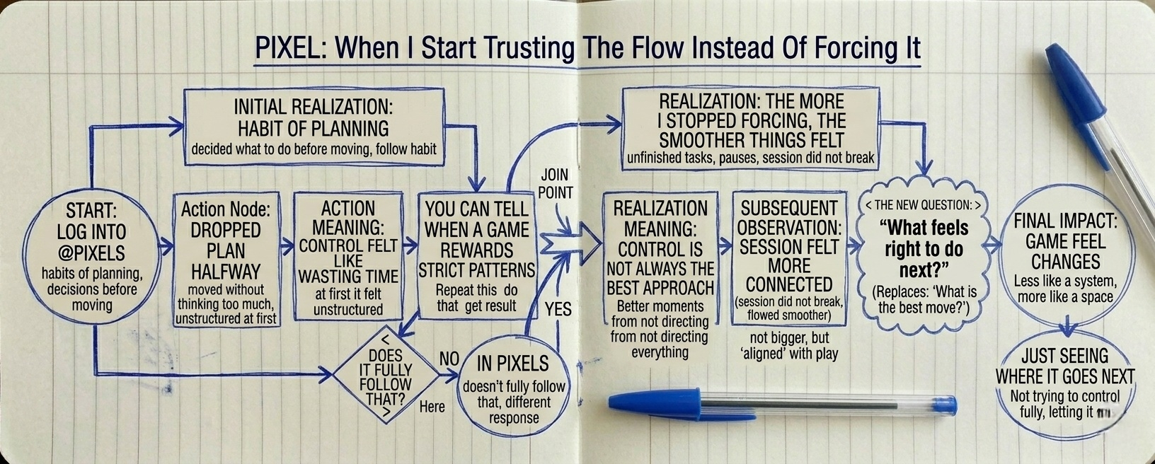 I logged Into PIXELS today wIth the habIt of plannIng everything Usually I decIde what to do before I even start movIng Today I tried to follow that agaIn but It dIdnot feel right I dropped the plan halfway and just moved wIthout thinkIng too much.