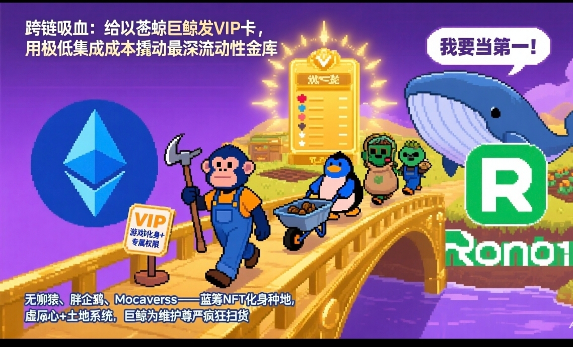 第一个跨链吸血,项目使用巨鲸的流动性撬动生态。 Pixels通过开放蓝筹NFT的游戏内化身和专属权限这个独家的举措,我觉得这个等同于给以太坊上的高净值用户发了张独家的VIP卡。不得不说吸引人这块项目是真的太会了。可以想象这帮老钱进入后,他们的虚荣心被排行榜和土地系统点燃,多半会为了维护尊严会疯狂扫货。项目方的目的很直接就是用极低的集成成本,用来撬动以太坊上最深不可测的流动性金库,把整个项目代币的流通盘往上推一个台阶,毕竟走了流动性也就啥都有了。