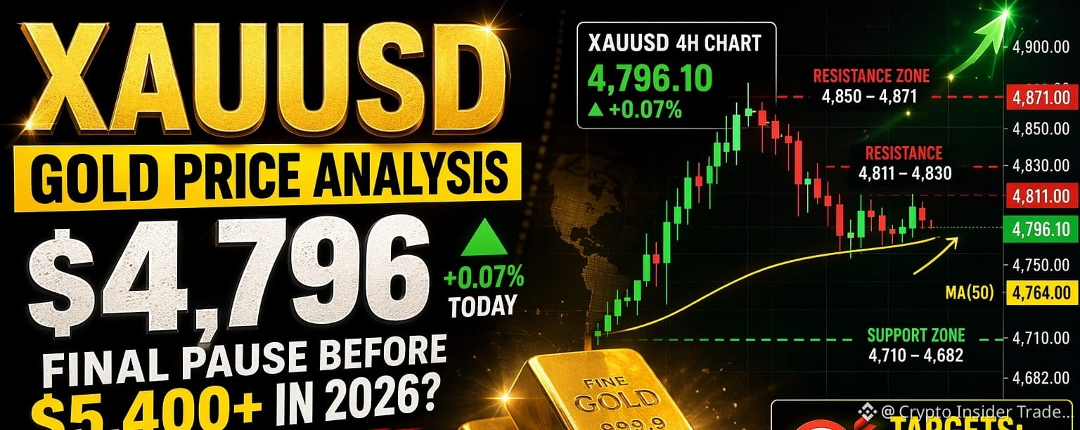 ✔︎ Hey traders! Gold just kissed $4,796.10 on the 4H chart (up +0.07% today) while the world watches the Middle East tension and central banks quietly stacking. After blasting to $4,871 earlier this month and pulling back to test the rising 50-period MA at $4,764, XAUUSD is sitting in a classic “coiled spring” setup.