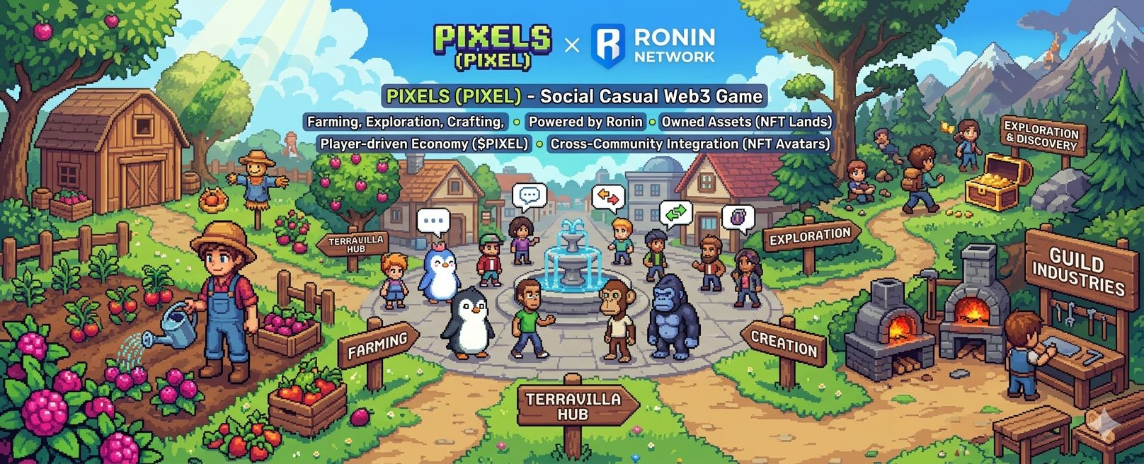 Terravilla is game ka wo markazi shehar hai jahan asli ronaq hoti hai. Yahan har waqt saikron log ghoom rahe hote hain. Sab se mazay ki baat ye hai ke agar aap ke paas koi mashhoor NFT avatar hai, to aap wahi ban kar is duniya mein ghoom sakte hain. Ye cheez Pixels ko dusri games se alag banati hai kyunke ye dusre projects ke sath mil kar ek barri community banata hai. Log yahan sirf paisa kamanay nahi aate, balkay log yahan dosti karne aur apne digital ghar ko sajane aate hain.