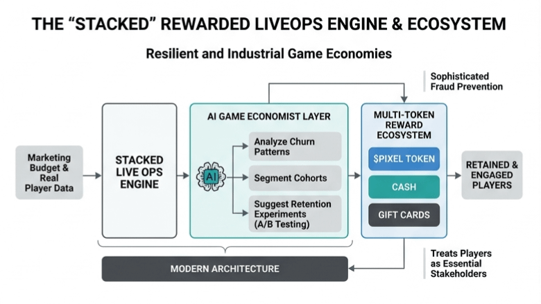 Stacked is essentially a rewarded LiveOps engine with a sophisticated AI game economist sitting on top of it but calling it a rewards app is like calling a Ferrari a golf cart. It represents the battle tested infrastructure that survived the actual adversarial chaos of the Pixels ecosystem. While most teams are busy shipping half baked quest boards that any script can defeat Stacked is already processing hundreds of millions of rewards across millions of users with a level of fraud prevention that took years of scars to develop. It turns the traditional marketing spend on its head by taking the massive budgets that studios usually hand over to predatory ad platforms and redirecting that value straight into the pockets of players who actually show up.