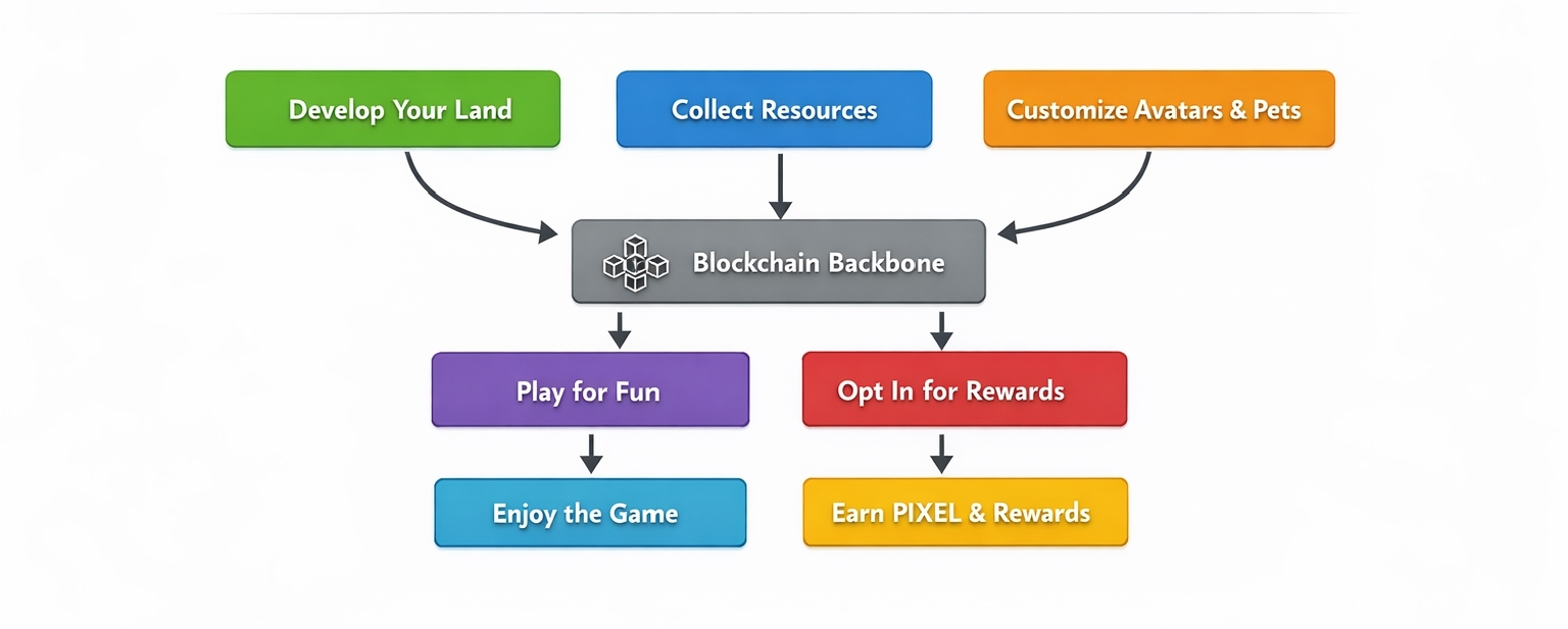 What caught me off guard is how much of it now runs on ownership that actually matters. Your land is not just cosmetic. What you build on it can generate resources that feed the broader economy. Avatars. Pets. And crafted items carry real weight because they are tied to the blockchain. And yet the game never forces you to think about that unless you want to. You can play completely free and still progress nicely. The on chain stuff sits quietly in the background until you decide you want skin in the game.
