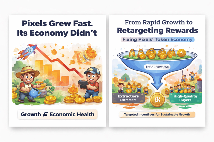 That changes how I read the project.The real lesson is not that Pixels failed to grow. It clearly grew. The lesson is that growth quality and growth quantity are not the same thing. A game can lead the category in users and still discover that too much of the economic activity is extractive rather than compounding. Pixels now describes one of its core problems very plainly: many players were extracting value without meaningful reinvestment or contribution back into the ecosystem.
