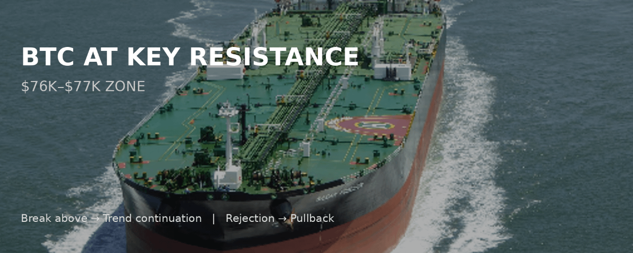 BTC jumped toward $77K, showing strong momentum — but this level is still acting as major resistance.