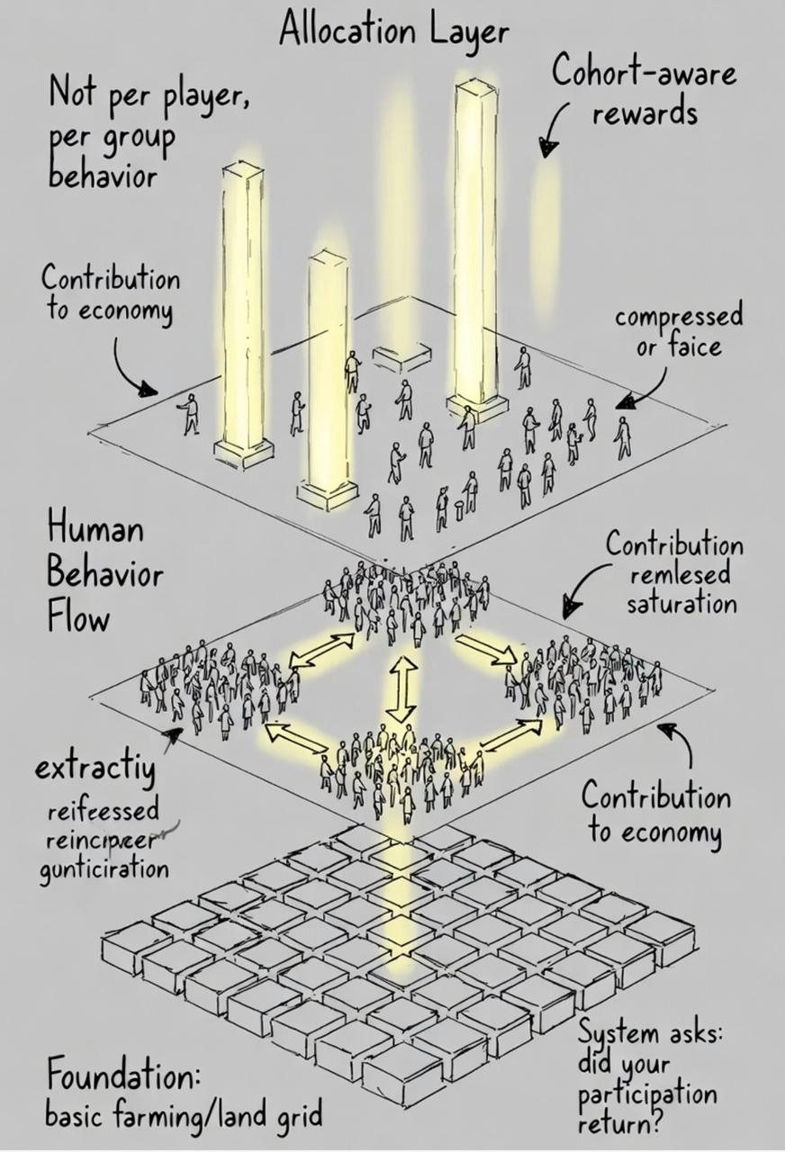 If a player extracts more than they contribute over time, the system compresses their future returns. Not directly, not visibly, but through how rewards get distributed across cohorts.