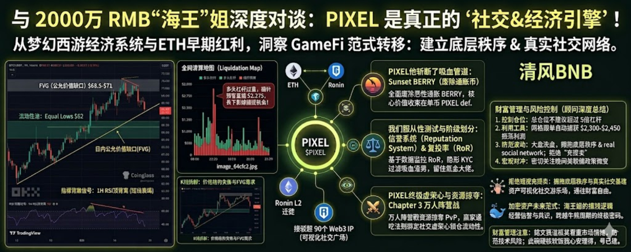 她笑了笑,眼神突然变得非常锐利,对我说:“清风,那些都是过去式了。大盘最近跌得这么狠,你别再去碰那些高倍合约了。我这几天盯上了我的第五个目标。你这周末帮我建个号,我们去玩玩 PIXEL。”