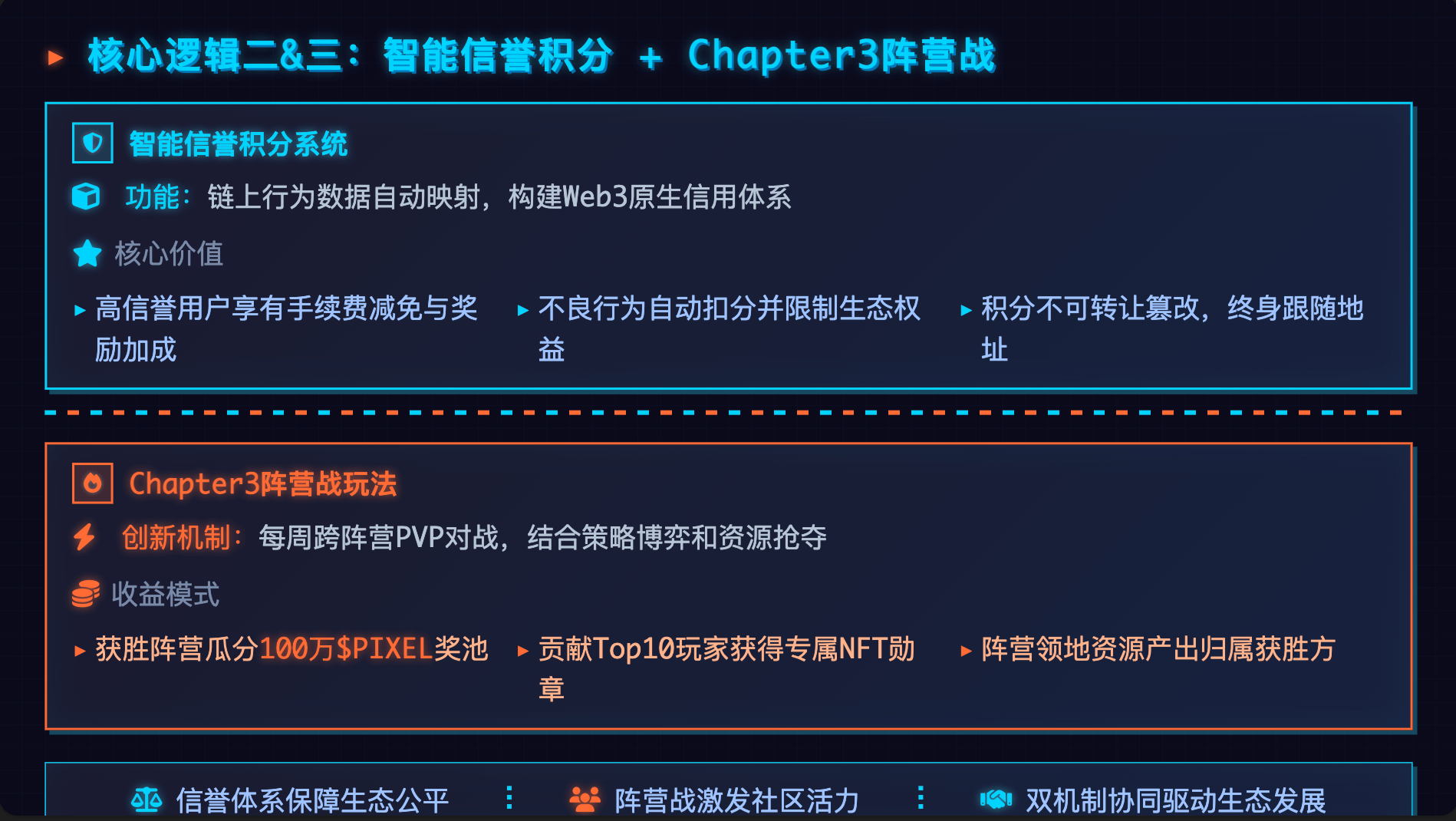 $PIXEL 引入了一套基于数据科学的智能信誉系统(Reputation)。系统会像鹰眼一样盯着你的在链资产和游戏内行为: