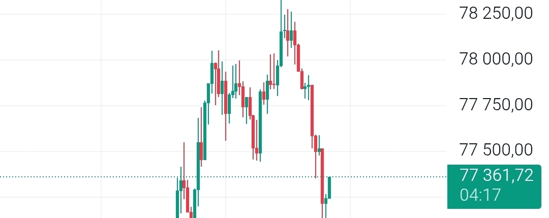 Key levels now define the battlefield. Resistance stands at 77,800–78,000, while support sits at 77,000, followed by a stronger demand area around 76,500. A break below 77,000 could accelerate downside toward lower support, while reclaiming 78,000 is required to restore bullish momentum.