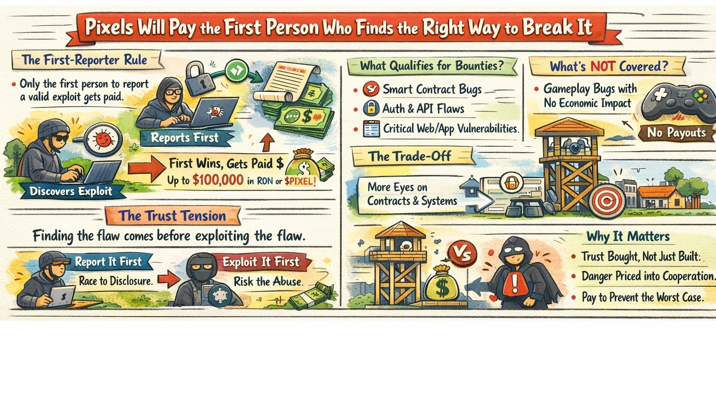 That is why the bounty matters. It is not just rewarding good behavior. It is trying to buy a head start against catastrophe. And in Pixels, that means some of the people protecting trust may begin as the people closest to breaking it.