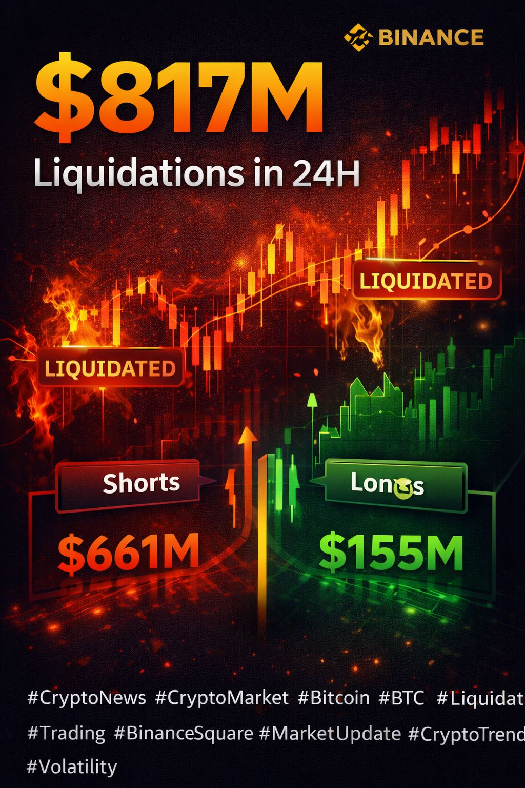 👍 The crypto market saw significant liquidations totaling approximately $817 million within the past 24 hours, reflecting a sharp wave of volatility across major assets. 👍