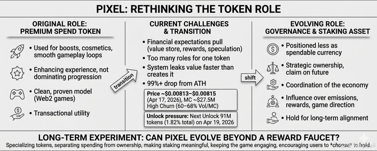If it works, the implications go beyond Pixels. It would suggest that GameFi tokens don’t need to die—they just need to specialize.