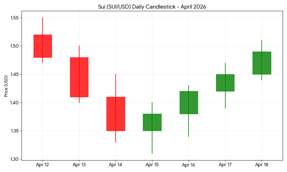 SUI/USD Daily Candlestick Chart (April 12 – April 18, 2026)